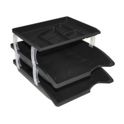 Bantex Vision Letter Tray Set • Modern, functional design • Set of 3 trays with 3 tier moulded plastic frame • High quality gloss finish moulded plastic trays to be stacked on a transparent plastic frame which permits sliding of trays for easy removal of contents • Non-skid feet to rest firm on desk • Maximum document size: 320 x 235mm • Neatly stores documents and paperwork.
