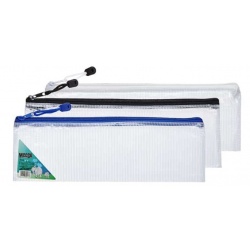 Heavy Duty clear pencil bag with mesh reinforcing • assorted colour zip