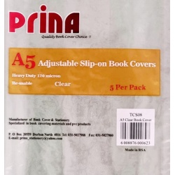 Prina A5L PVC book covers • Adjustable • Re-Usable • 120 microns • 5/pack