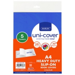 A4 Fitted Marlin Coloured Heavy Duty 140 micron Slip On Covers • 5 x single colour covers per pack • Covering school books is a breeze with these coloured slip covers • The super-strong, heavy-duty 140 micron Polypropylene covers will be sure to protect your books and look super cool in a rainbow of colours • Assorted colours (One colour per pack).