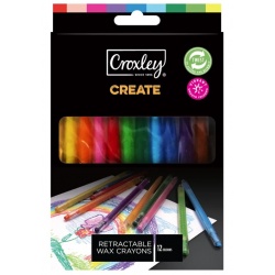 12 retractable wax crayons • Non-Toxic • Bright colours