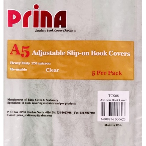 Prina A5L PVC book covers • Adjustable • Re-Usable • 120 microns • 5/pack