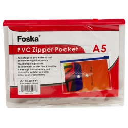 Clear A5 PVC zipper bag with assorted zip colours