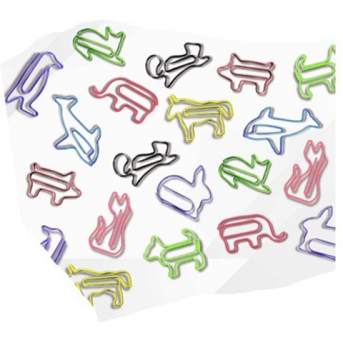 Box of 20 sturdy coloured paper clips in assorted shapes