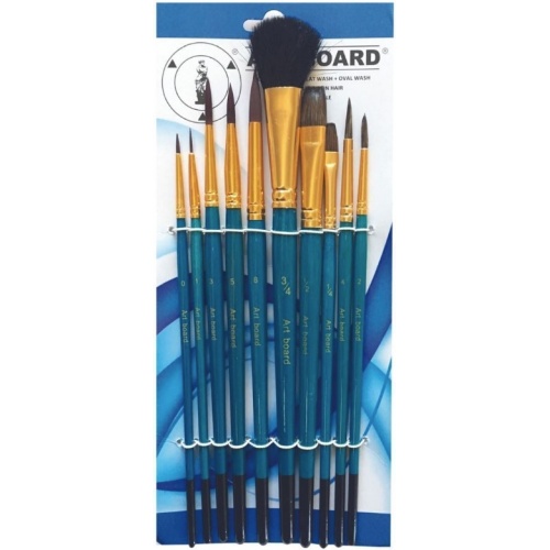 Art Board Natural & Synthetic Watercolour Paint Brush Set - 10 Piece