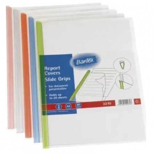 B3270 - A4 transparent P.P. covers with 6mm slide grips in assorted Imac colours - Holds up to 20 sheets of 80 gsm paper - 5 per pack