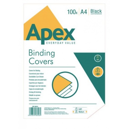 Fellowes Apex Leatherboard Covers are designed for use with various binding methods, including wire binding and comb binding. These high quality 230gsm black leatherboard covers bring a professional look to your bound documentation. Ideal for projects, presentations and sales pitches. Sized to A4, these covers fit quickly and easily to your documents to produce a stylish finish. Available in various colours.
